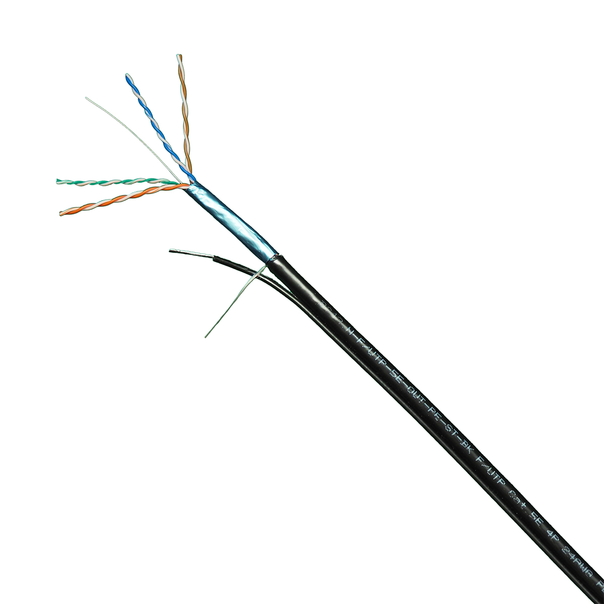 Кабель витая пара BNH, F/UTP, 4 пар., кат. 5е, проводник Ø 0,51мм, AWG24, PE, 100МГц, 1м (катушка 305м), с тросом для подвеса, тип прокладки: снаружи зданий, цвет: чёрныйИнформация об упаковке