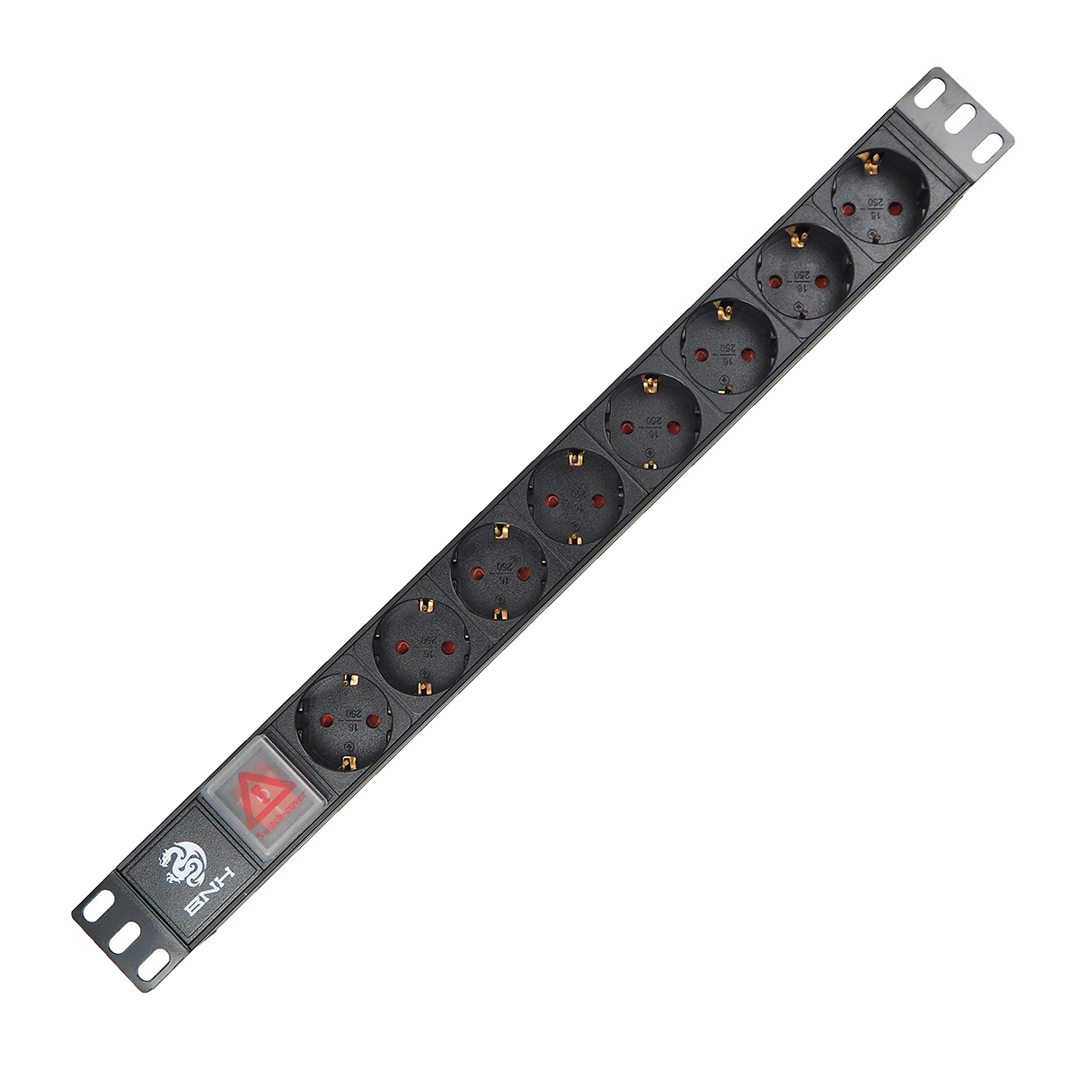 Блок силовых розеток BNH, 19", неуправляемый, Shuko х 8, вход IEC 60320 C14, для шкафов и стоек, 1U, 45х490х45 мм (ВхШхГ), 16А, выключатель, чёрныйИнформация об упаковке