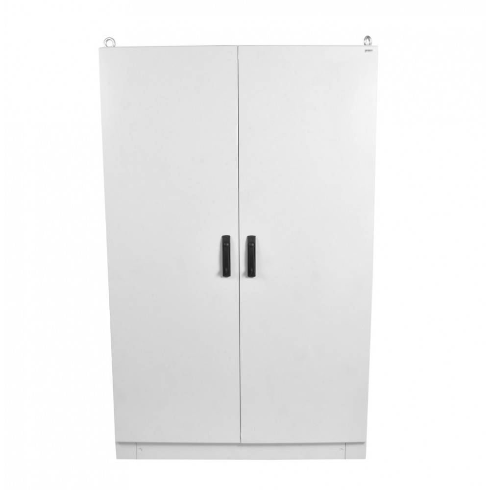 Шкаф поставляется в собранном виде, на деревянном поддоне, в упаковке из гофрированного картона. В стандартную комплектацию входят: корпус. дверь, ограничитель двери, задняя стенка. боковые стенки. цоколь, монтажная панель.