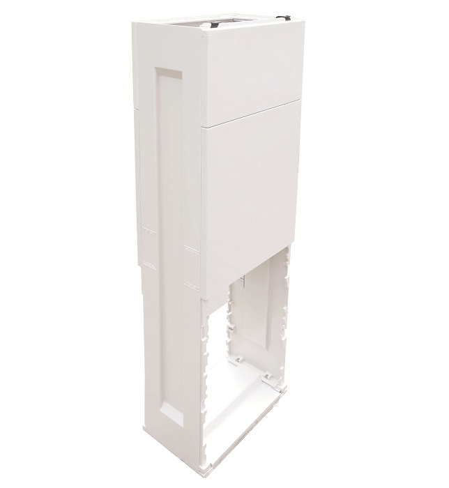 Фундамент имеет полностью разборную конструкцию с фиксированной высотой — 890 мм и глубиной 250 мм. Благодаря применению пазовых элементов обеспечивается жесткость конструкции.Передние стенки фундамента легко снимаются без применения инструментов, что позволяет легко заводить кабель в уже установленный шкаф.
