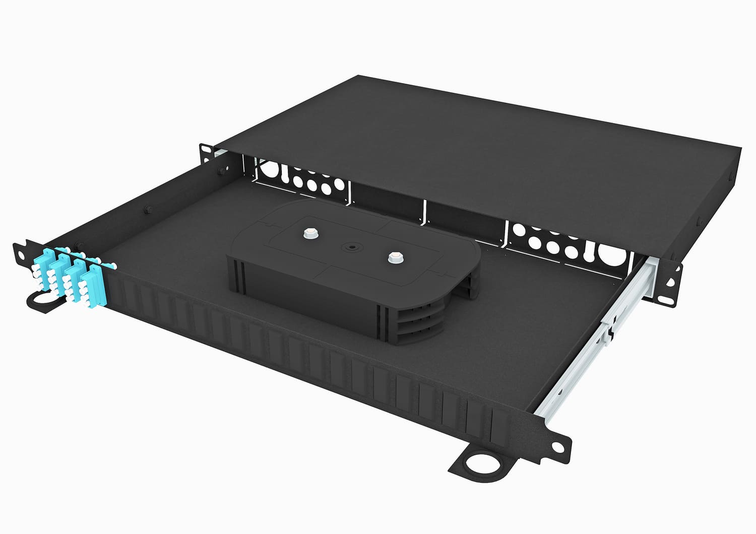 Кросс оптический стоечный выдвижной 19", 16 LC/UPC адаптера, многомодовый MM(OM3) 50/125, 1U, черный, укомплектованный, TopLAN