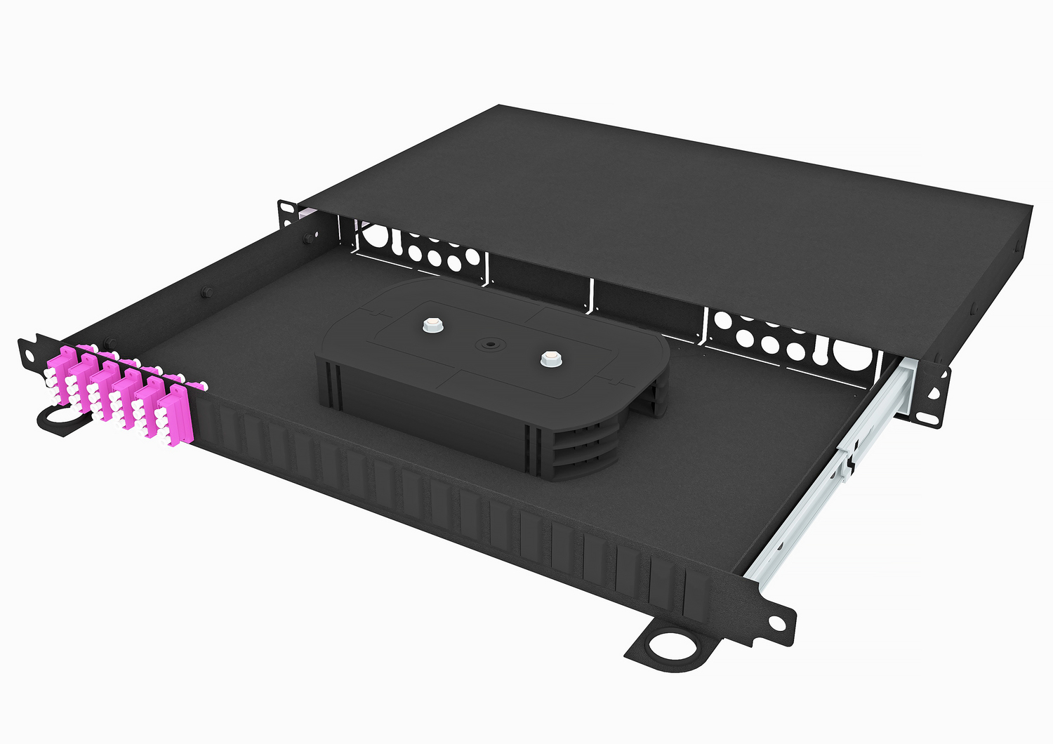 Данное устройство представляет собой пассивный элемент, который используется для соединения оптических волокон кабеля и защиты мест их сварки. Конструкция оснащена выдвижной панелью, поддерживающей установку адаптеров типов DSC и QLC.
