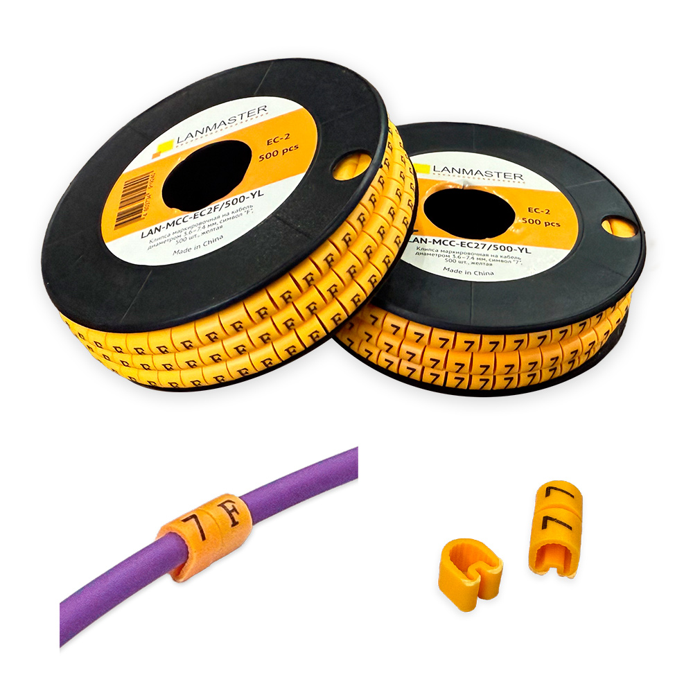 Клипсы с контрастными символами "1" облегчают процесс прокладки и эксплуатации кабелей. Изготовлены из мягкого эластичного ПВХ, рассчитаны для кабелей диаметром от 3,6 до 7,4 мм. Диапазон допустимых диаметров обоснован формой конструкции и гибкостью материала, это позволяет клипсе хорошо держаться на кабелях различной толщины.Представляют собой полую трубку, состоящую из отделяемых элементов, всего в рулоне 500 клипс. Маркеры просты в использовании, необходимо отделить клипсу от рулона, и надеть на кабель в последовательности заданного значения кодировки идентификатора линии.