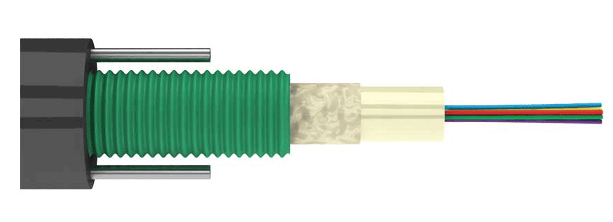 Предназначен для прокладки в кабельной канализации, трубах, лотках, блоках, тоннелях, коллекторах, по мостам и эстакадам, в грунт, между зданиями и сооружениями, а также внутри зданий.Кабель содержит оптический модуль со свободно уложенными волокнами. Свободное пространство в оптическом модуле заполнено гидрофобным гелем. Поверх модуля накладывается броня из гофрированной стальной ленты и оболочка из полимерной композиции, не распространяющей горение, не содержащей галогенов с низким дымовыделением, стойкой к УФ-излучению. Свободное пространство под гофрированной лентой заполнено гидрофобным гелем. В оболочке кабеля диаметрально противоположно расположены две стальные проволоки, которые выполняют функции силовых элементов.