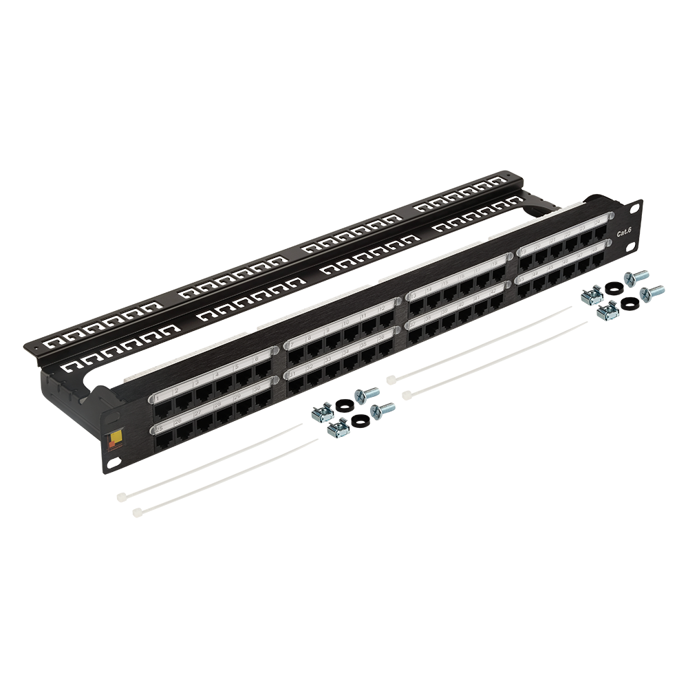 48-и портовая неэкранированная патч-панель предназначена для разделки на ней кабелей различных подсистем СКС и подключения отдельных составляющих сети друг к другу коммутационными шнурами.