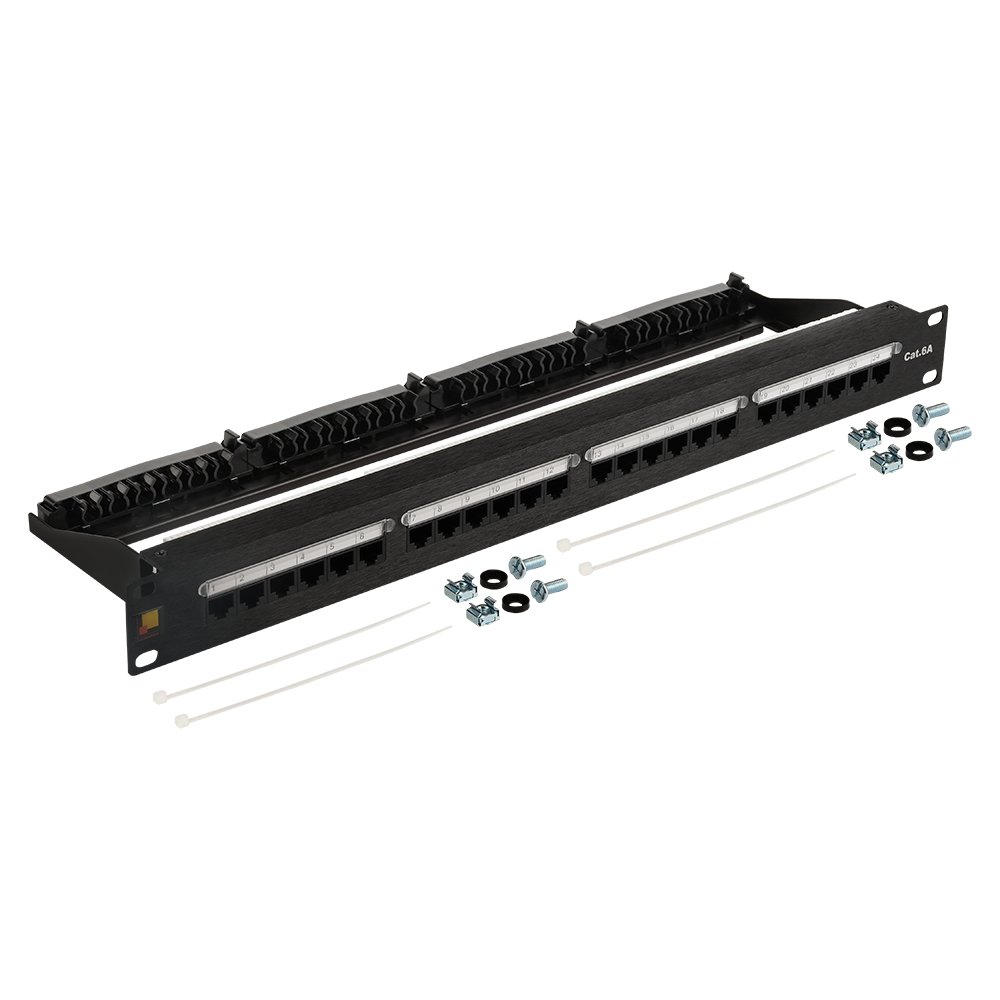 Технические характеристики Lanmaster LAN-PPN24U6A Патч-панель 19", 24 порта RJ45, неэкранированная, кат.6A, 1U, с задним органайзером с фиксаторами кабеля