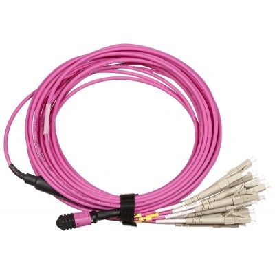 Сборка кабельная TopLan MPO-12LC, 12 волокон OM4, низкие потери, LSZH, 5 м, розовая