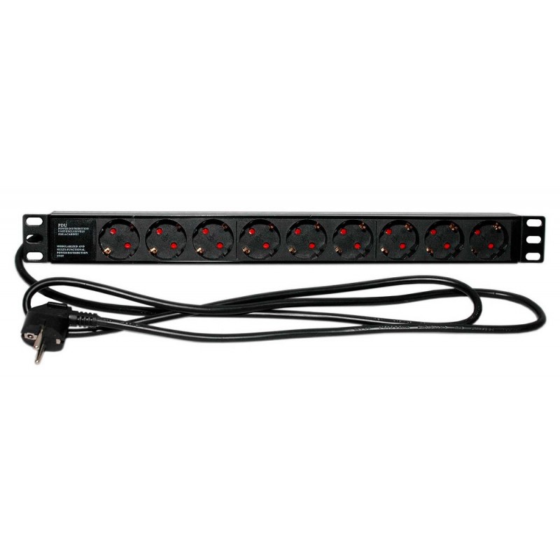 Блок розеток PDU-LX-029P.SW на 9 розеток евро (розетки SHUKO, стандарт CEE 7/4 тип F), предназначены для установки в 19 дюймовый шкаф или стойку, для подключения суммарной нагрузки не более 16А. Шнур встроенный с боковой стороны блока розеток, длин шнура 2м, вилка Shuko (Евро).Информация об упаковке