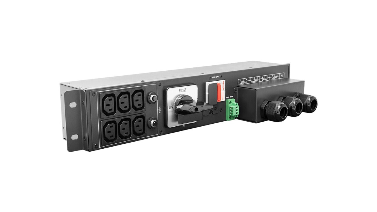Совместим с однофазными ИБП стоечного исполнения мощностью 6–10 кВА. Выполнен в формате 2U для установки в 19‑дюймовую стойку или телекоммуникационный шкаф.