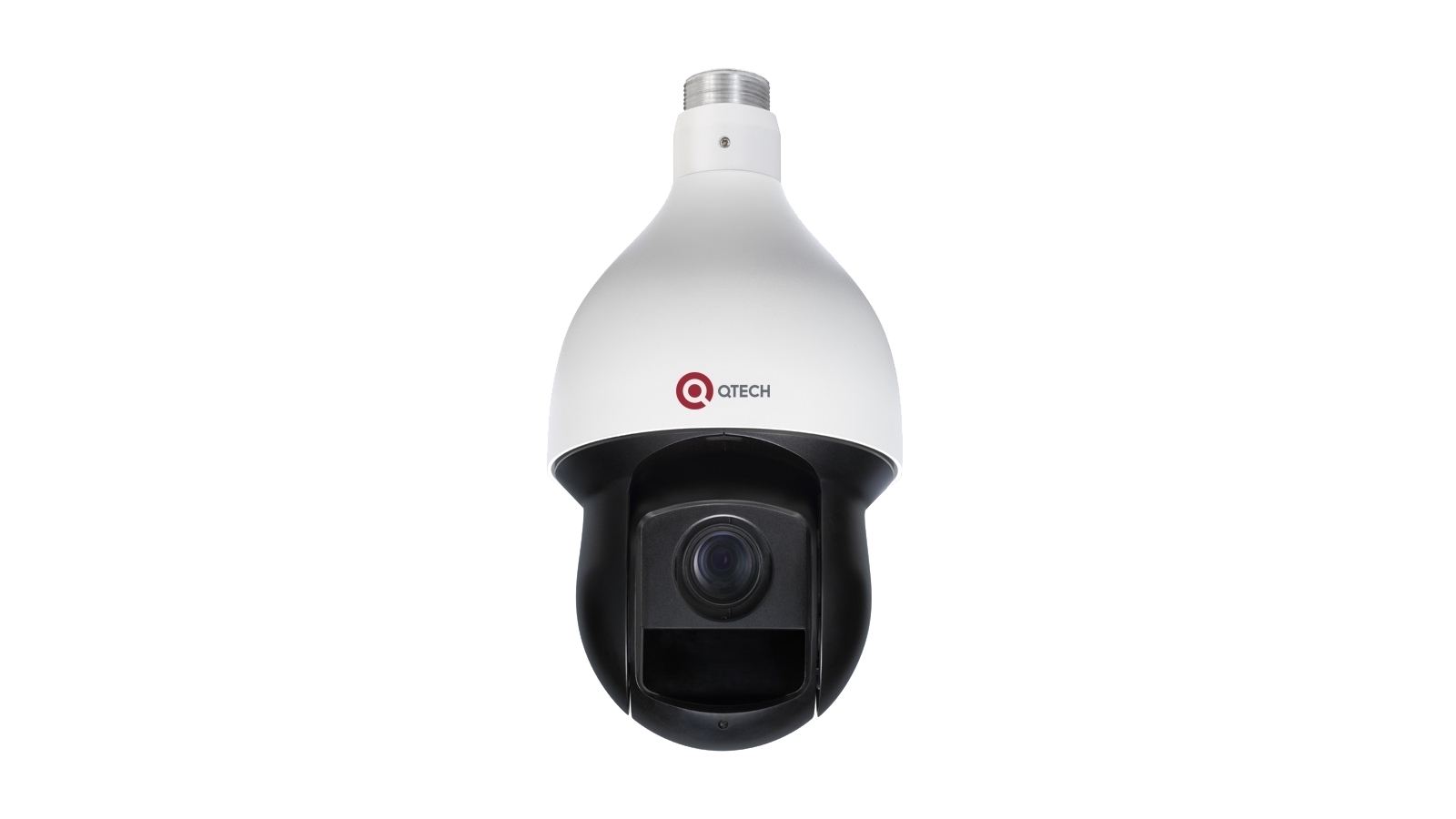 Купольная поворотная высокоскоростная IP‑камера QVC-IPC-R804AD-PRO (37x) с разрешением 8 Мп и сенсором 1/1.8" CMOS. Оснащена трансфакаторным объективом с 37‑кратным оптическим зумом и фокусным расстоянием 5,5–202 мм — угол обзора меняется в диапазоне от 60° до 2,3°.
