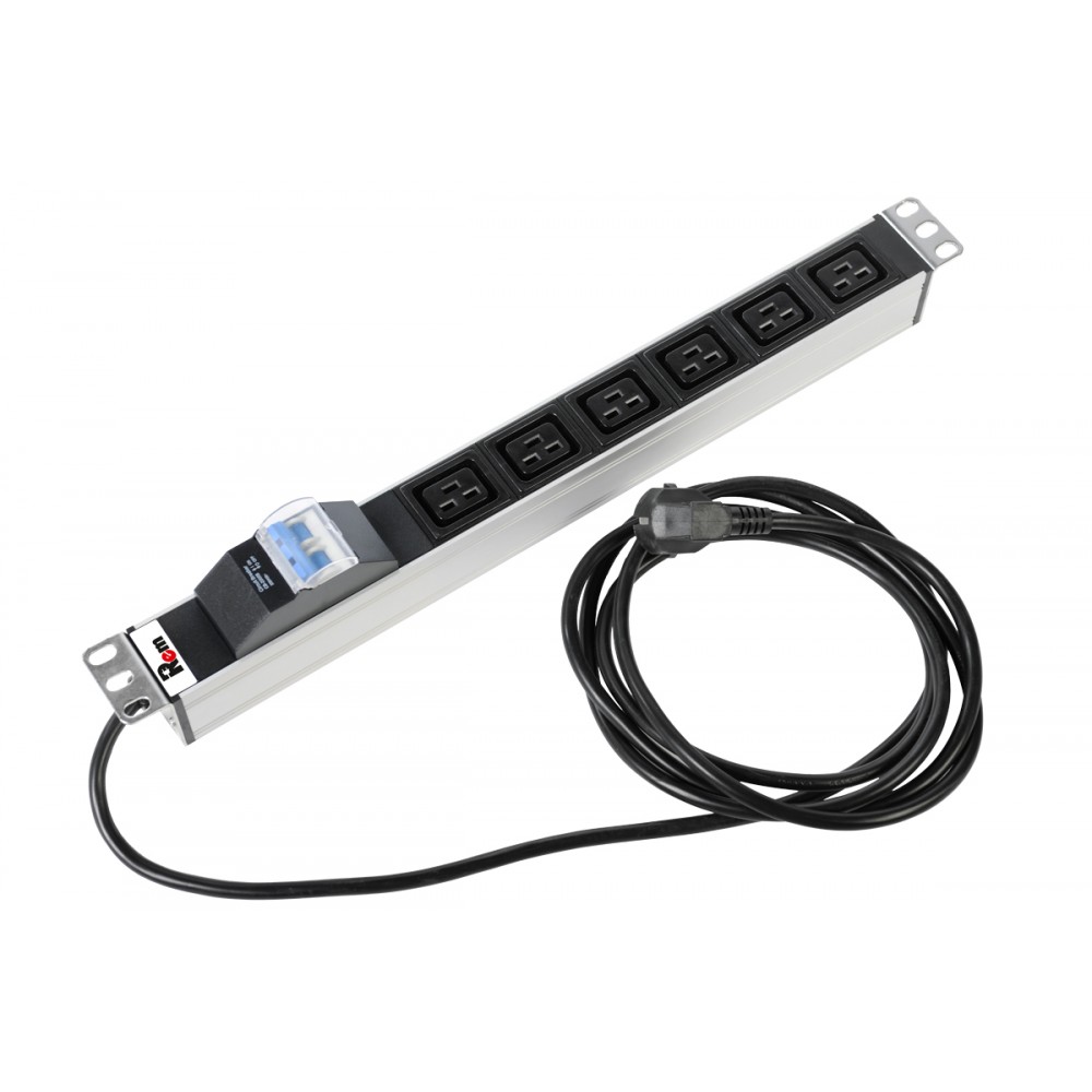 Блок силовых розеток имеет шесть портов стандарта IEC 60320 C19, выполнен в анодированном алюминиевом корпусе. Блок имеет автомат защиты 16А. Кабель питания 3 метра. Совместим со всеми линейками 19” монтажного оборудования. Поставляется в индивидуальной упаковке с комплектом крепежа. Выполнен в системе несущих конструкций 482,6 мм по ГОСТ 28601.2 (19-дюймовые конструктивы по МЭК 297).Номинальный ток нагрузки: 16А.