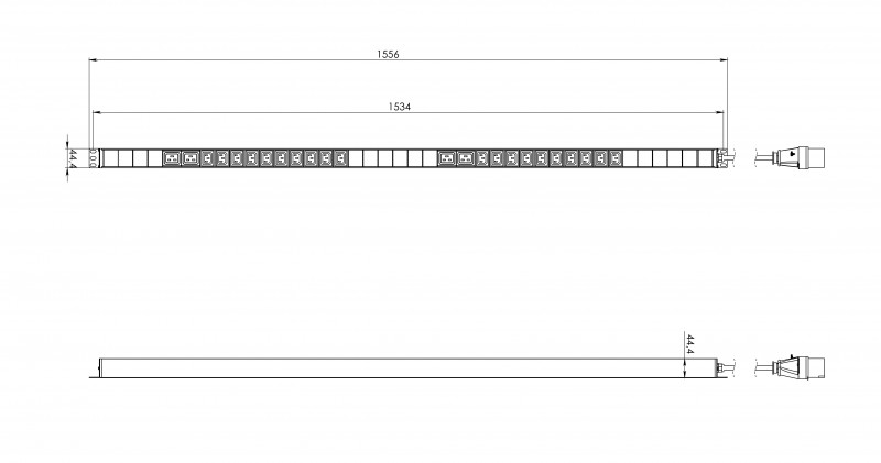SHE-20IEC-4BIEC-3PVB Блок розеток, вертикальный, 20 розеток IEC320 C13, 4 розетки IEC320 C19, кабель питания 3м (3х4.0мм2) с вилкой IEC 60309 32A (2P+E), 250В, 1700x44.4x44.4 мм (ДхШхВ), корпус алюминий, черныйИнформация об упаковке