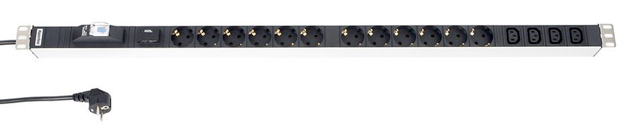 Hyperline SHT-12SH-2IEC-2.5EU Блок розеток, вертикальный, 12 розеток Schuko, 2 розетки IEC320 C13, кабель питания 2.5м (3х1.5мм2) с вилкой Schuko 16A, 250В, 750x44.4x44.4мм (ДхШхВ), корпус алюминийИнформация об упаковке