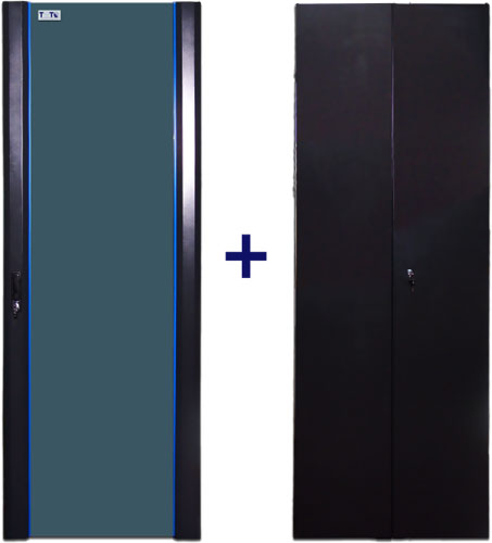 Дверь №2 Металлическая распашная дверь – холоднокатаная стальная дверь, без перфорации, замок ригельного типа (верх-низ), без ручки, 2 ключа, стопор двери и 2 нижние опорные оси в комплекте, две точки подключения защитного заземления (на каждой половинке двери).